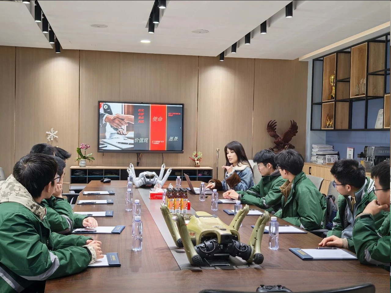参观结束后,大家围坐一堂,聆听企业简介与科技产品应用讲解。我们用通俗有趣的语言,介绍了深耕减速机领域的历程,以及产品在工业自动化、智能装备等领域的广泛应用,让抽象的机械知识变得生动易懂,同学们认真记录、积极提问,求知的眼神里满是对科技的向往。